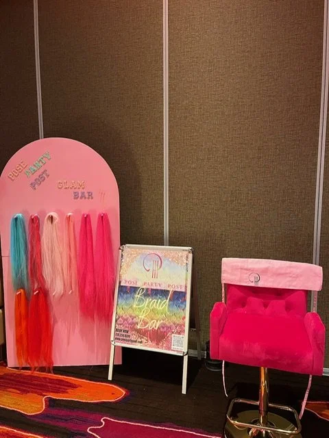 2. Signature Braid Bar including choice of braid, colored hair & glitter or clip in tinsel (colored hair spray available for boys)